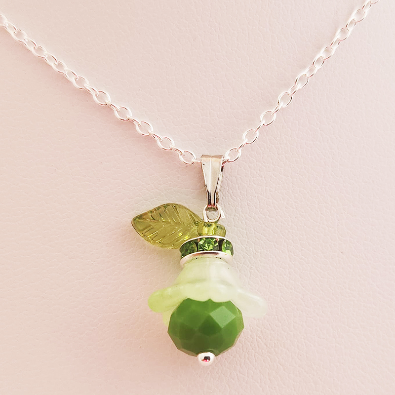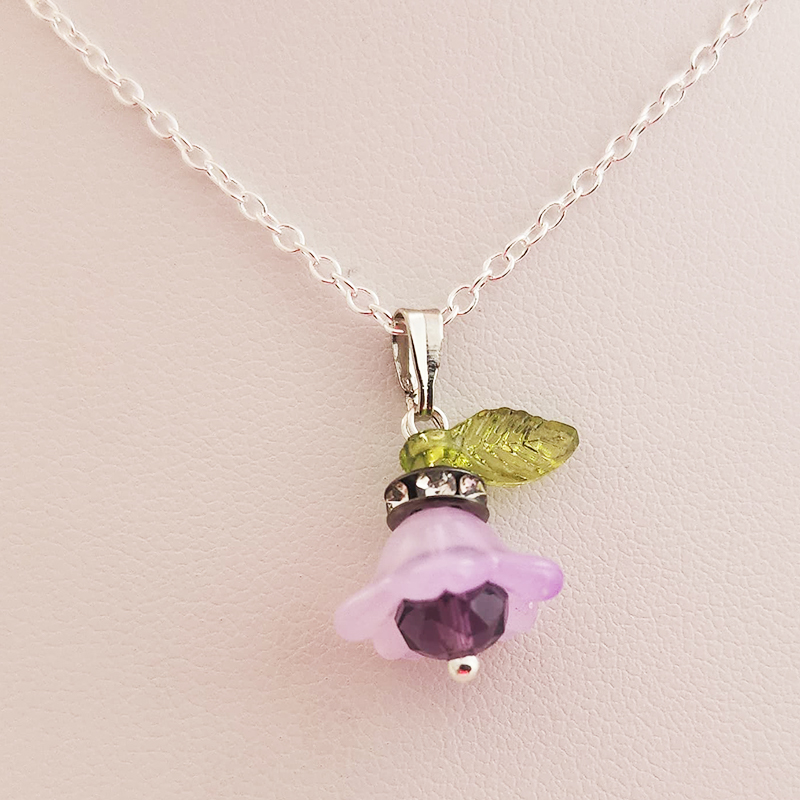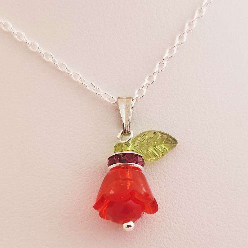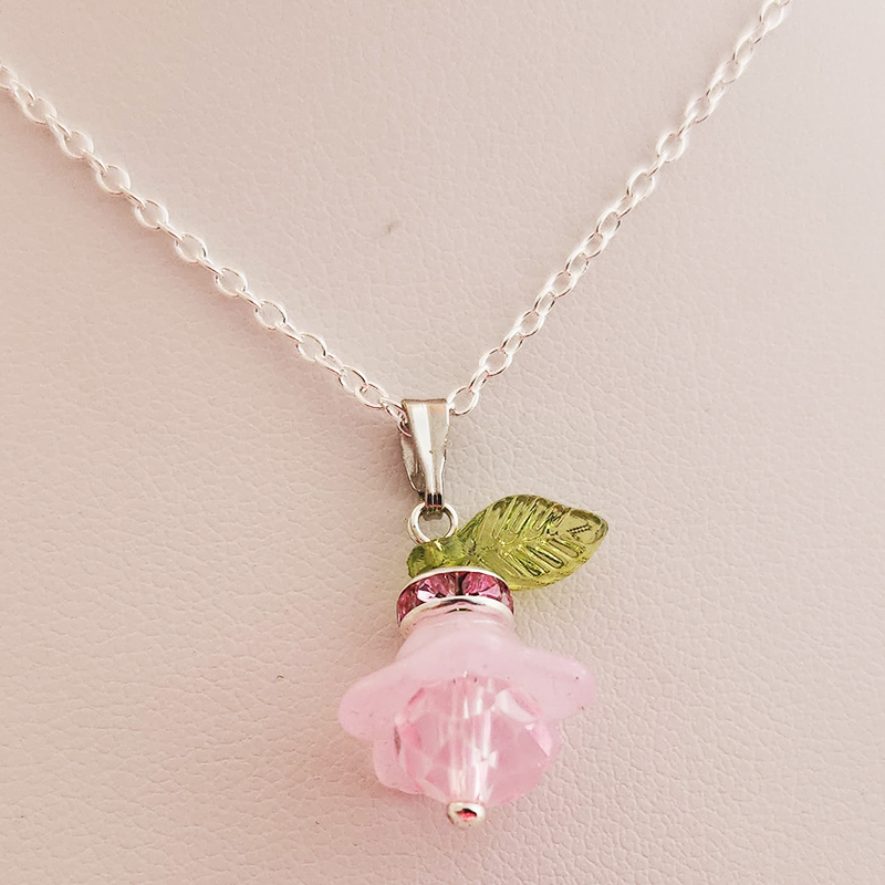 Crystal Tulip Pendant on 18 Inch Silver Chain